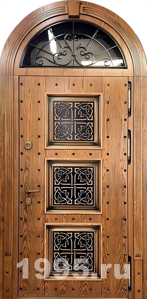 Стальная дверь арочного типа МДФ со вставками, стеклопакетом и решеткой
